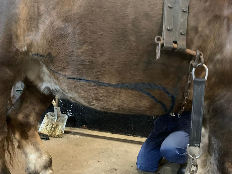 Hier was dat ook verstandig want in eerste instantie zou ik hier te hoog geschoren hebben waardoor de ketting het paard onder aan de buik zou kunnen beschadigen.